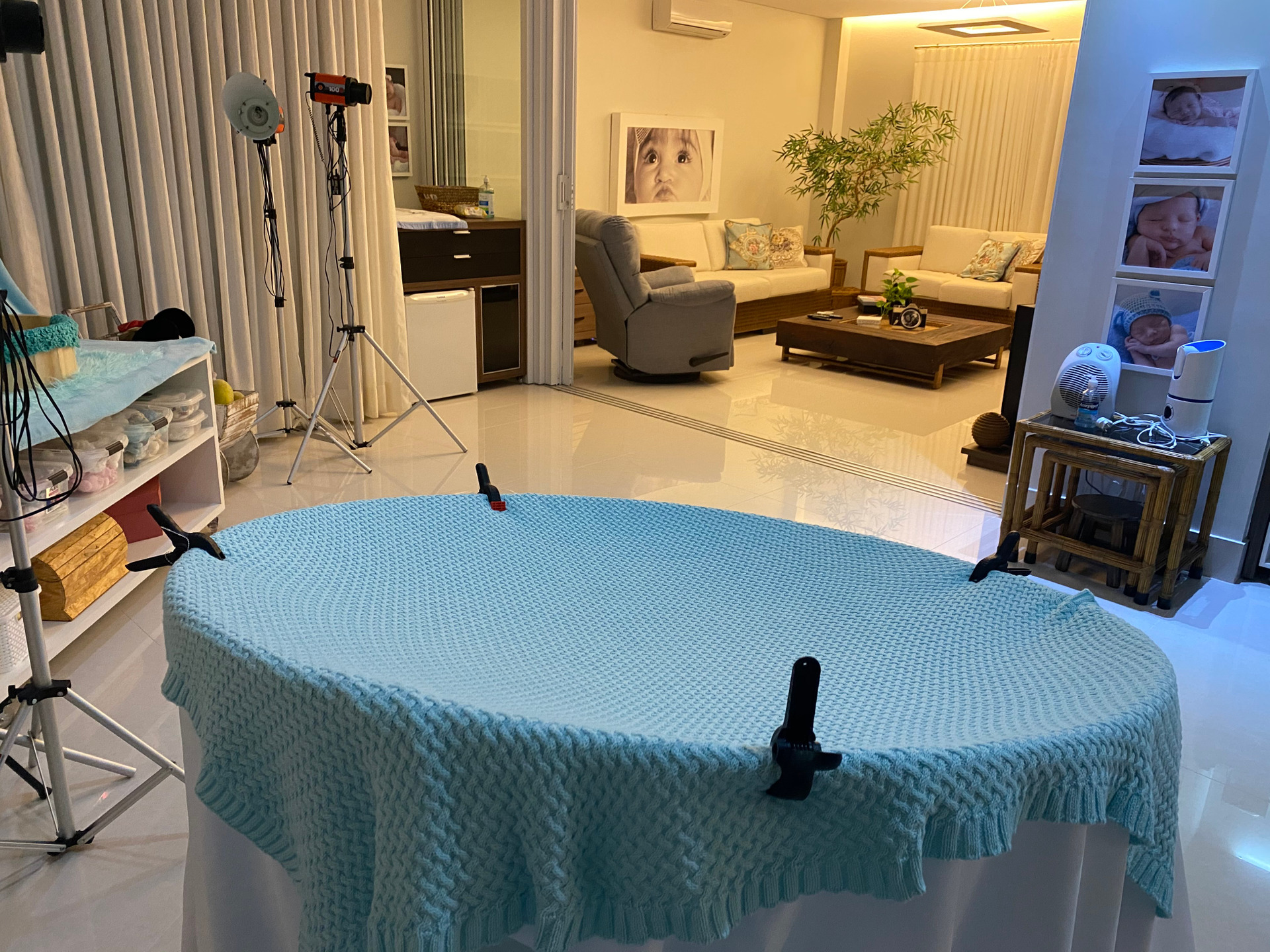 maior segurança do seu filho. Temos todos os acessorios que serão utilizados durante o ensaio, todos limpos e desinfetados. A maior prioridade, é a segurança e o conforto do bebezinho que acabou de nascer.